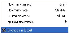 В кожному з довідників є можливість експортування даних з таблиці в MS Excel.