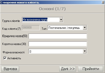 На закладці «Основні» необхідно вказати основну інформацію про клієнта, зокрема: