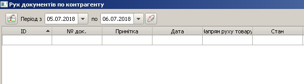 В результаті чого з’явиться вікно «Рух документів по клієнту», в якому необхідно зазначити проміжок часу, за який необхідно вивести документи по даному клієнту