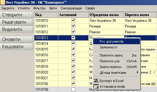 Список документів по даному клієнту можна експортувати в табличний процесор, за допомогою контекстного меню (клацнути ПКМ) та вибрати пункт «Експорт в Excel»