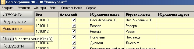 Для видалення клієнтів необхідно, вибрати відповідного клієнта та натиснути кнопку видалення на панелі інструментів.