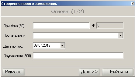 В даному вікні «Створення нового замовлення» необхідно вказати: