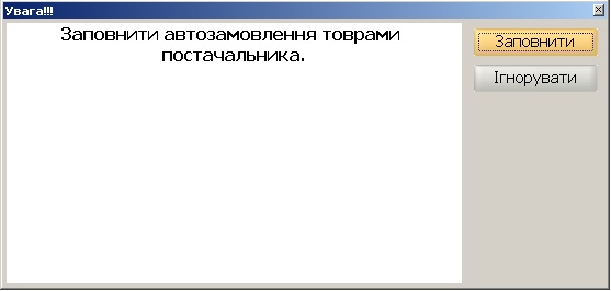 При натисненні кнопки "Прийняти" програма запитає чи ви бажаєте заповнити документ товарами постачальника