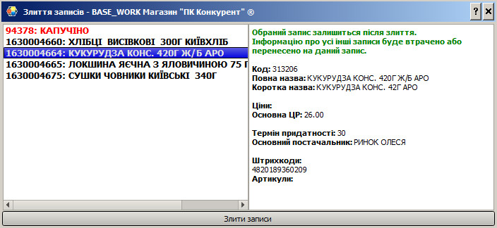 Діалог злиття виділених записів